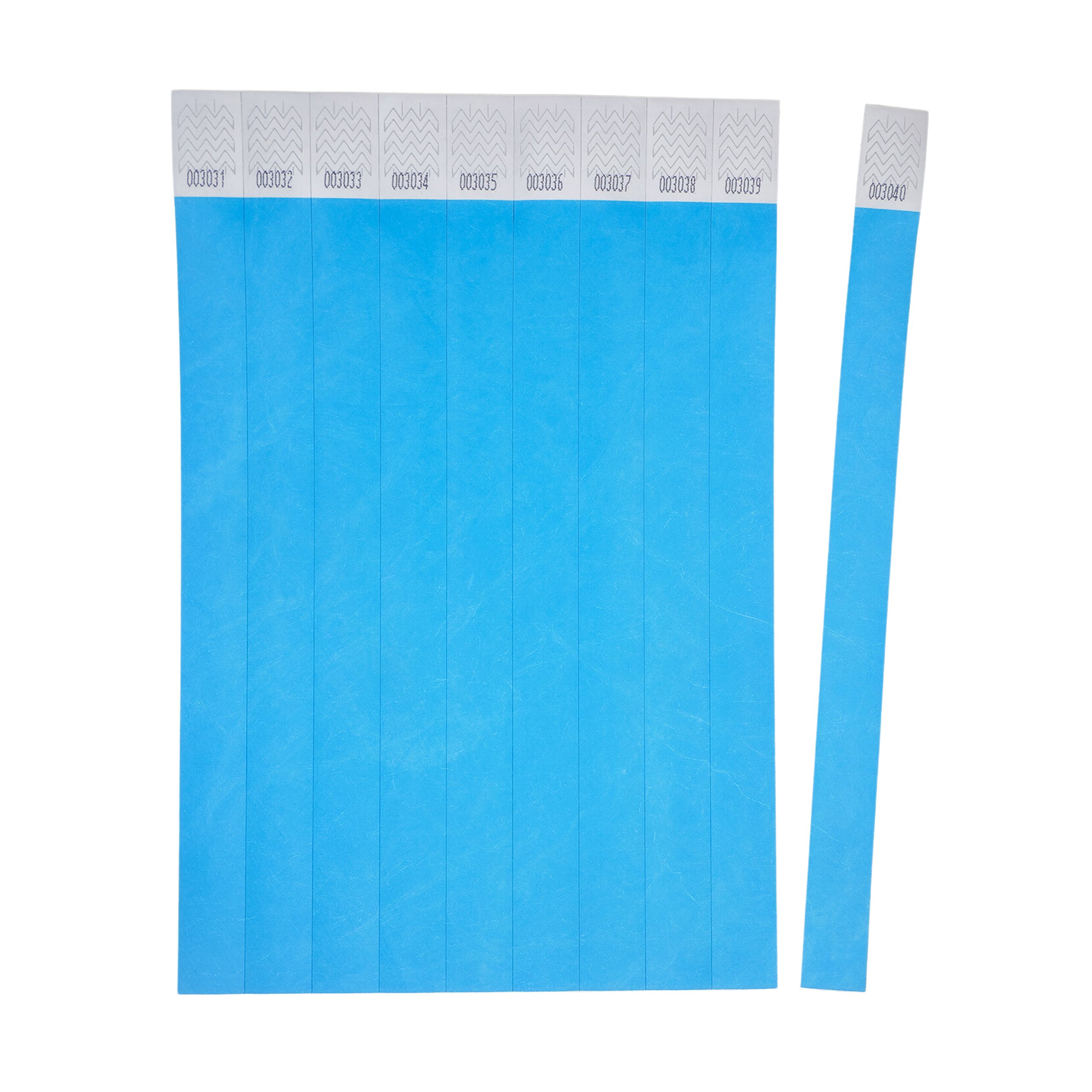 Avery Tyvek® armbånd med fortløbende numre. Vandfaste, rivfaste og smudsafvisende. Pakke med 500 stk. Ideelle til arrangementer, konferencer og adgangskontrol.