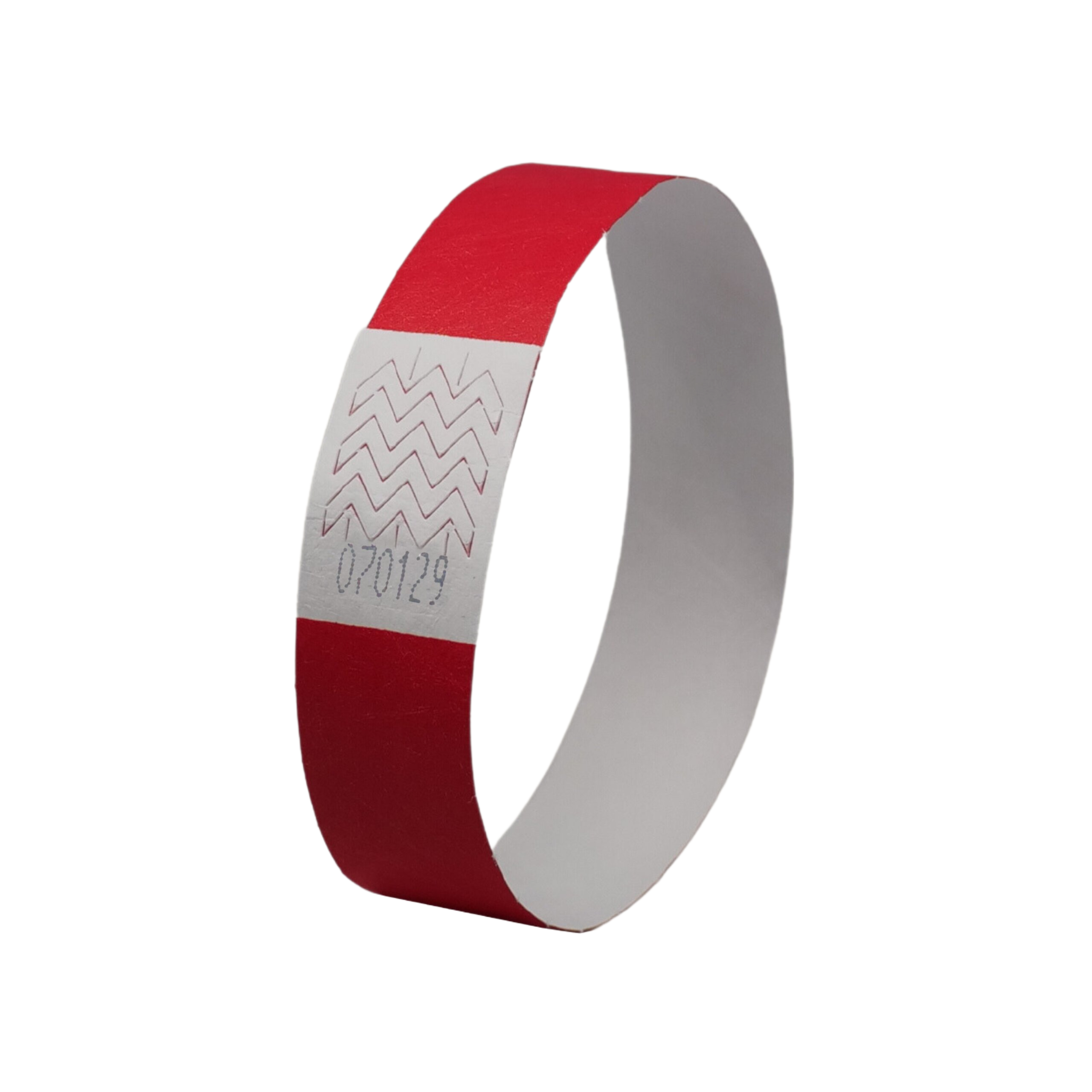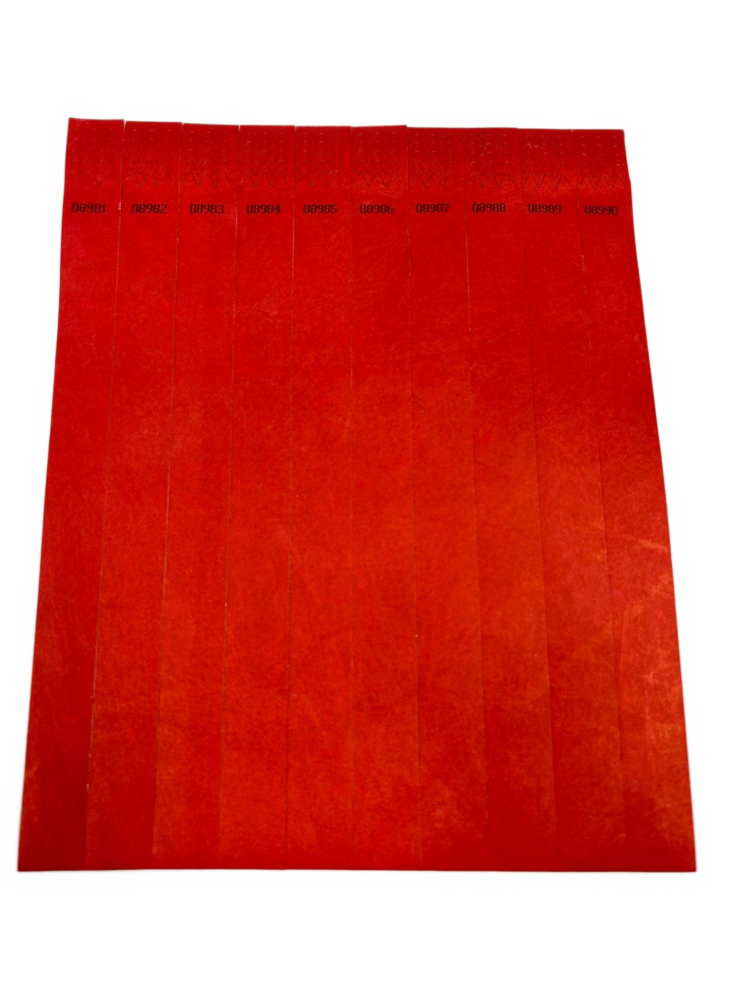 Avery Tyvek® rød engangs armbånd med fortløbende numre. Vandfaste, rivfaste og smudsafvisende. Pakke med 100 stk. Ideelle til arrangementer, konferencer og adgangskontrol.