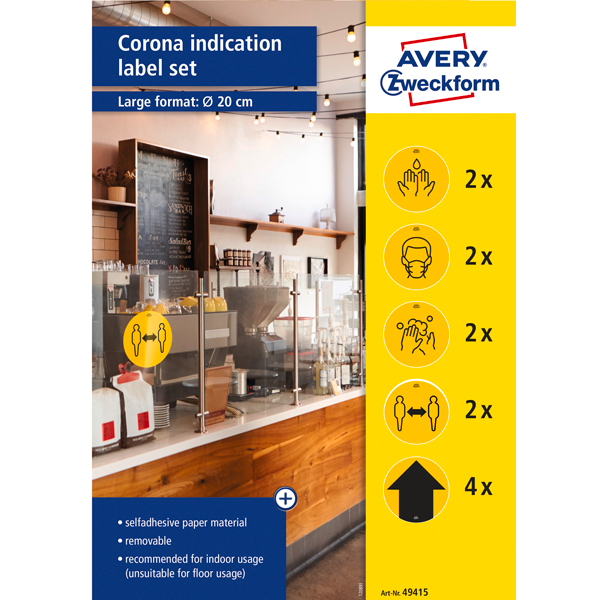 Avery Covid 19 hygiejneetiketter og retningspile