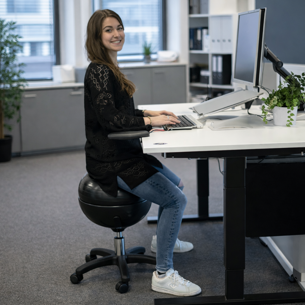 Denne ergonomiske balancestol med balance bold er udviklet til dig, der ønsker mere bevægelse i arbejdsdagen og en sundere siddestilling.