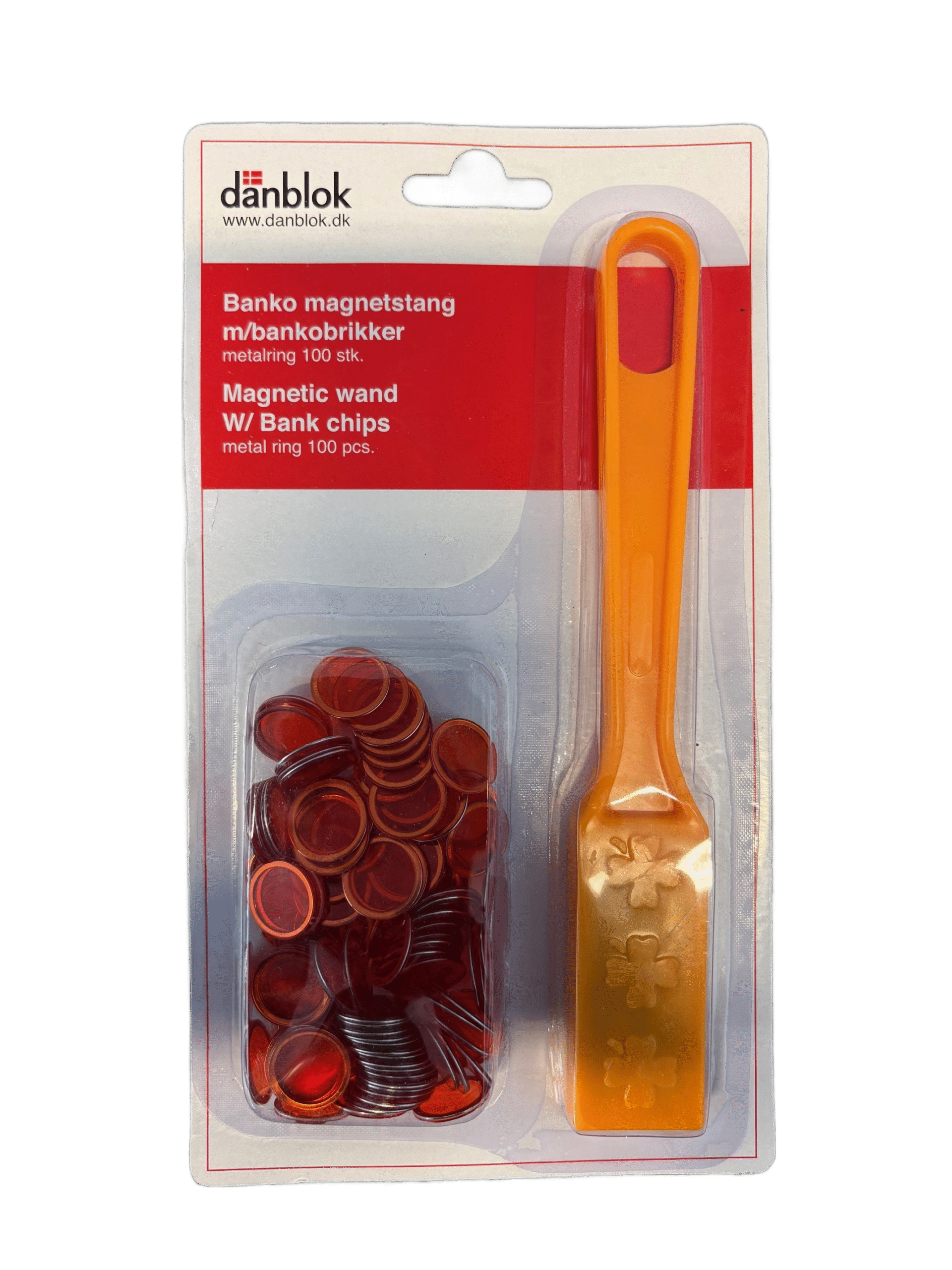 Magnetisk bankostang med 100 brikker. Gør oprydning efter bankospil hurtig og nem.