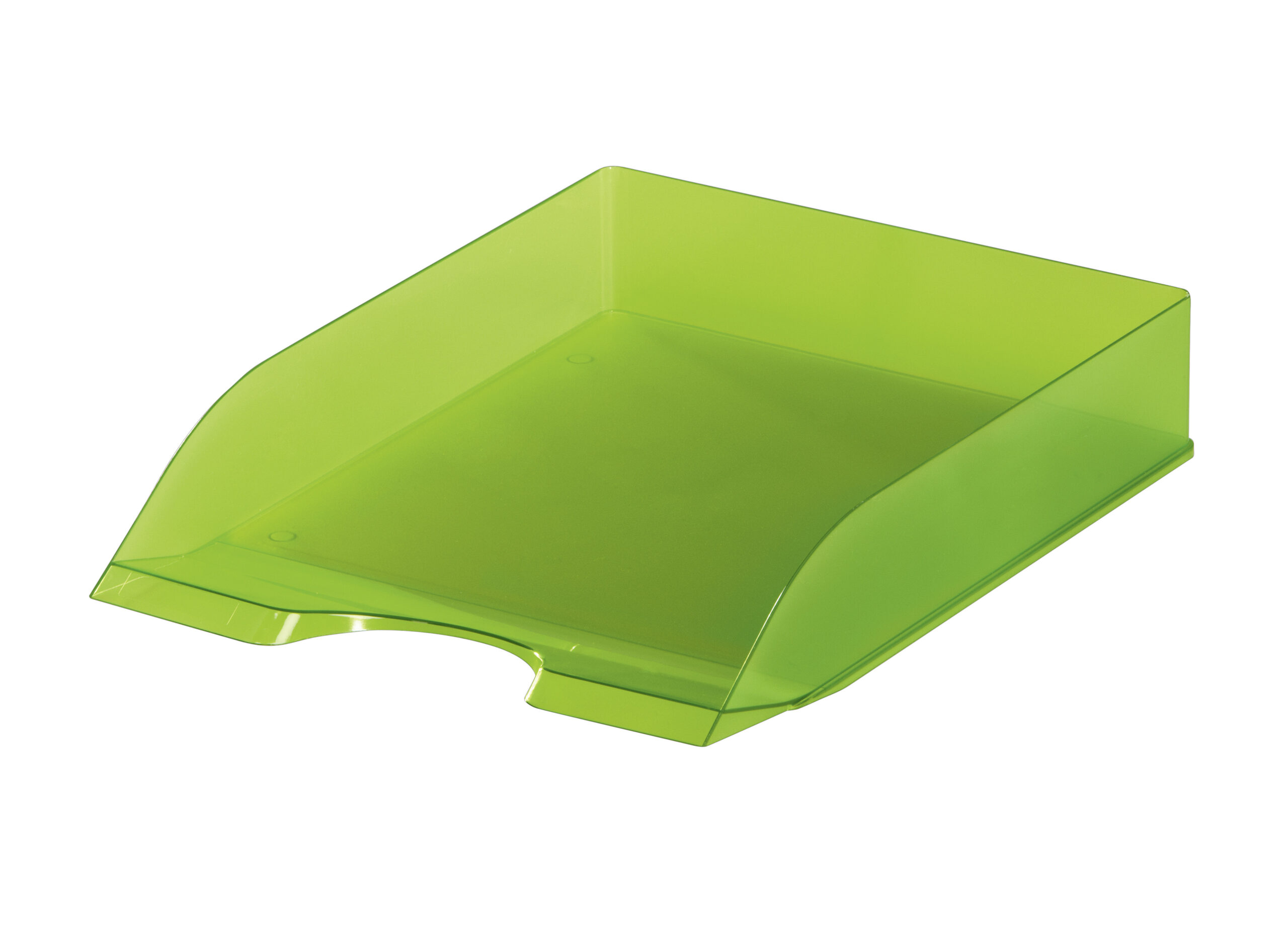 Brevbakken har en skrånende forkant og en udstanset åbning, som gør det nemt at få fat i papirerne hurtigt – perfekt i en travl arbejdsdag.