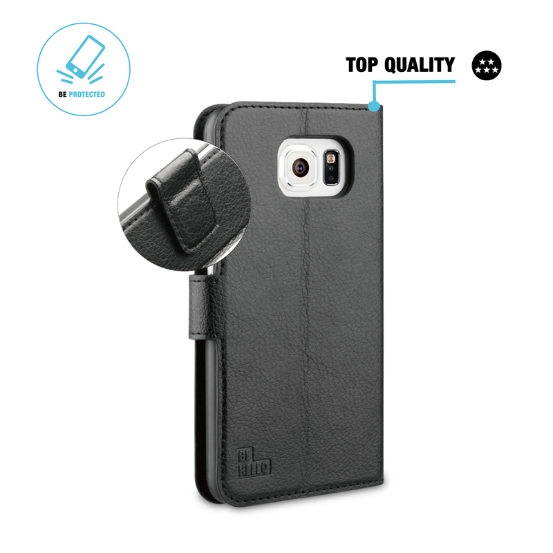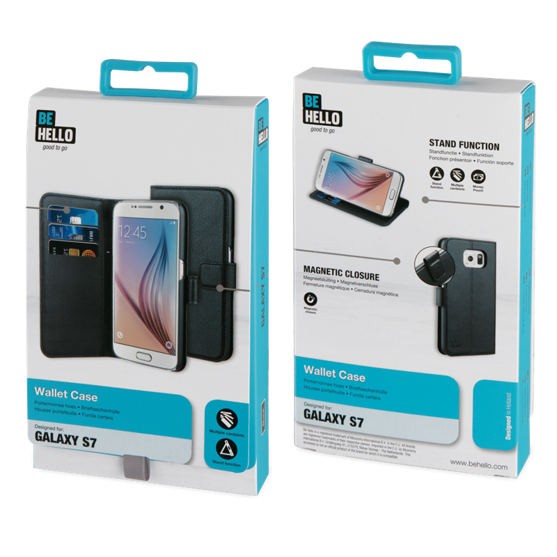 Sort elegant wallet flip-cover i lettere blødt materiale med læderlook. Magnetisk flip-lukning i siden. Indvendig plads til 3 kreditkort. Perfekt beskyttelse af din Samsung Galaxy S7.