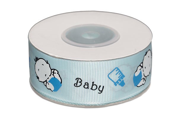 Dekorationsbånd med baby, 25 mm. x 10 mtr. (lysblå)