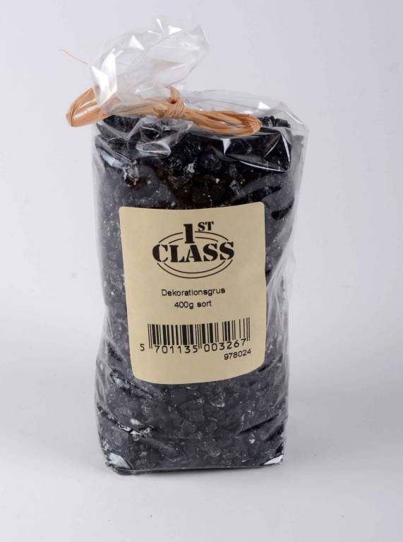 Flot farvet dekorationsgrus som kan anvendes til mange former for dekoration, særdeles velegnet til dekorationer med levende lys, da gruset er brandhæmmende. Leveres i cellofanposer med 400 gr.