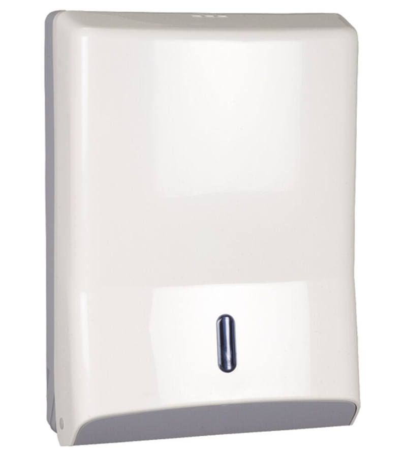 Det stilrene design i hvid plast passer perfekt ind i toiletter, køkkener og klinikker.