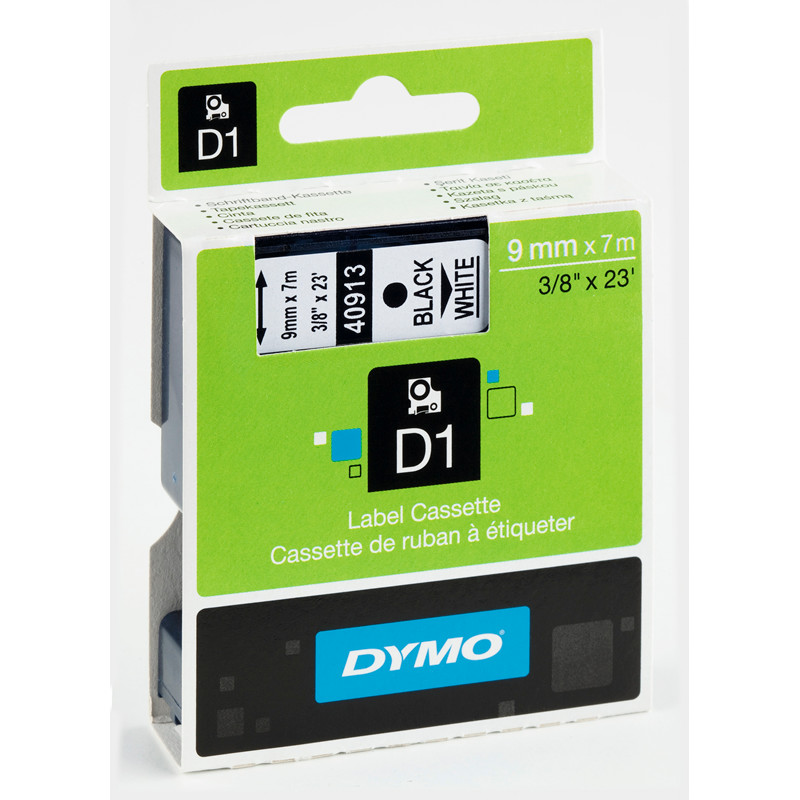 Dymo D1 tape 9 mm. sort/hvid 40913