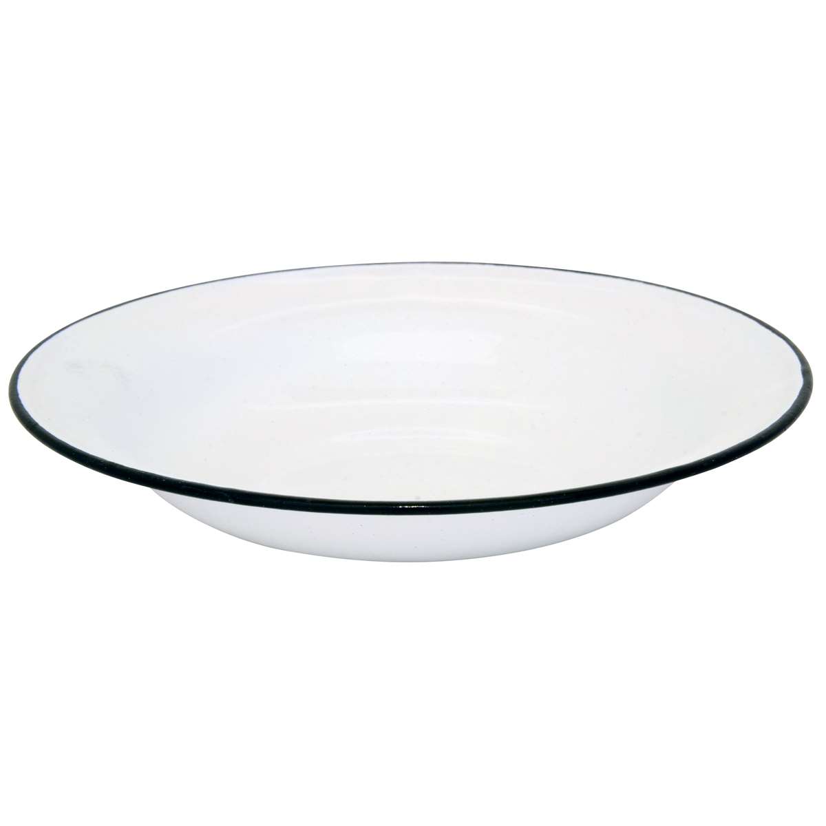 Lille emalje skål/tallerken i gammel stil med sort kant. Skålen fremstår lettere slidt så den ser ud som om at den har været brugt i mange år. Mål: Højde: 2,5 cm. Ø14 cm.