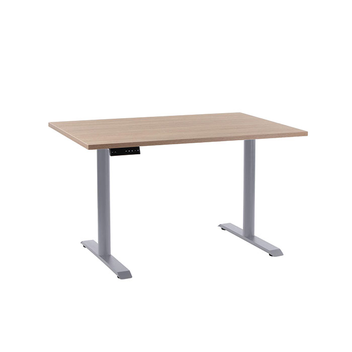 EP3000 hæve sænke stel med runde slanke søjler, samt er det med memory funktion, hvilket betyder du nemt kan indstille det i 4 højder, som huskes, så du nemt kan komme op eller ned i din helt rigtige ergonomiske stilling. Et Manager Pro hæve sænkebord kan passe ind i de fleste miljøer, om det er et storrumskontor eller den lille hjemmearbejdsplads, så passer skrivebordet ind, da det er meget elegant og stilrent. 2-leddet hæve sænke stel, som betyder det passer til de fleste personhøjder. Har 2 motorer, der gør at bordet har en maks. belastning på 120 kg jævnt fordelt på bordpladen. Memory funktion med 4 indstillinger. Anti-kollisionssystem. Vores hæve sænkebord er udstyret med et anti-kollisionssystem, hvilket betyder at hvis bordet møder modstand, vil det automatisk køre et par cm den anden vej. På den måde undgår man skader på skuffekassetter eller andet som kunne komme i vejen for bordet når du hæver eller sænker det. Systemet kan slås til og fra, og kan justeres i sensitivitet via betjeningspanelet. Det viste Manager Pro hæve sænkebord er med et alu farvet stålstel og en slidstærk rektangulær decor laminat bordplade i 80×120 cm, med rette ABS kanter, som gør bordpladen mere modstandsdygtig overfor slag.