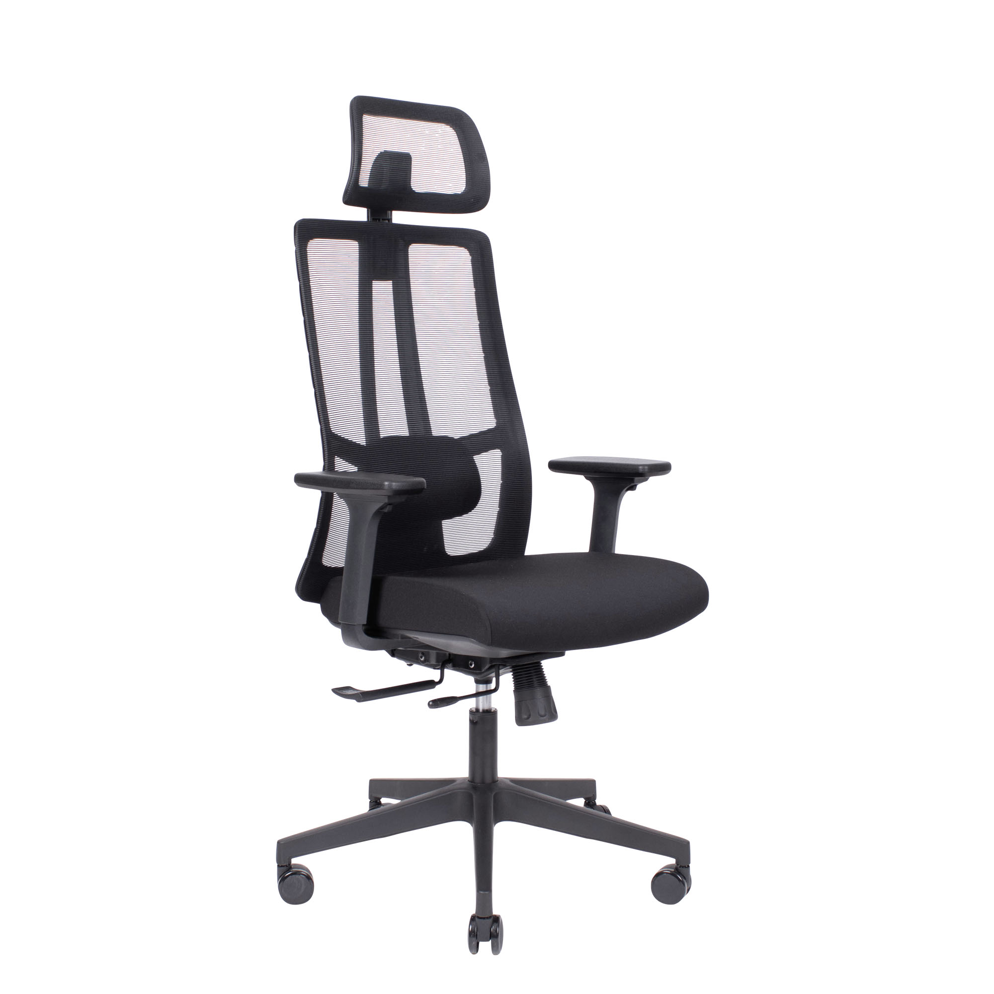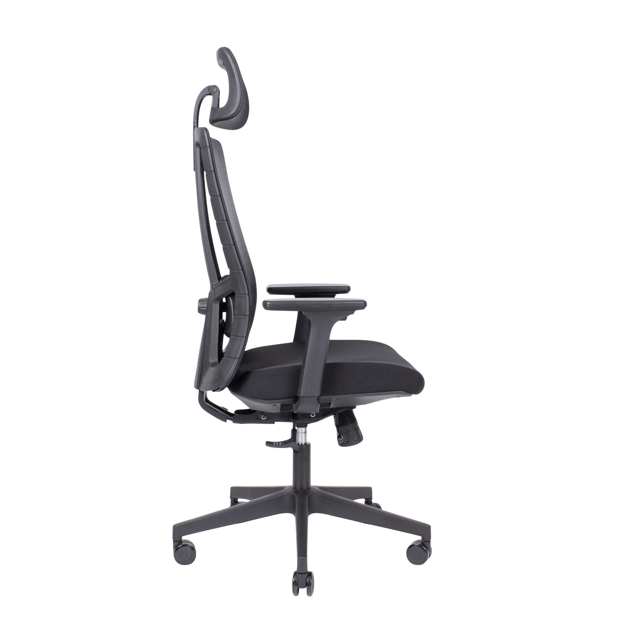 Kontorstol med netryg og nakkestøtte Elegant kontorstol med sæde i sort eller mørkegrå og matchende netryg. ErgoTek er med mange ergonomiske funktioner. ErgoTek kommer med låsbart synkronvip, 4 positioner. Når man vipper bagud på skrivebordsstolen, bevæger sædet sig også synkront med ryggen i et ergonomisk fordelagtigt forhold. Der er desuden justerbar lændestøtte, i højde og dybde samt højdejusterbar ryg. Sædedybdejusteringen sørger for den rette støtte under baglårene. Nakkestøtten giver ekstra komfort. Den kan justeres i højde og vinkel. Netryggen fungerer behageligt ventilerende – ekstra komfort på varme dage. ErgoTek fås også uden nakkestøtte Vi anbefaler den ekstra komfort, du opnår ved at købe de højdejusterbare armlæn. De er med top som kan justeres i bredde og frem/tilbage. Find dem under andre har også købt. ErgoTek er bl.a. med følgende funktioner:   Synkronvip, hvor sæde og ryg vipper sammen i et ergonomisk optimalt forhold Sædedybderegulering, så den rette støtte opnås til baglårene Højdejusterbar ryg med justerbar lændestøtte. Dertil nakkestøtte.   Specifikationer Stoffarve: sort eller mørkegrå Siddehøjde: 50-60 cm. Armlæn: ekskl.