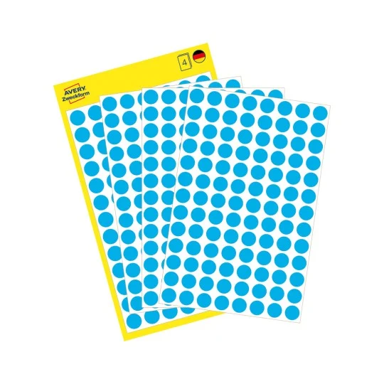 Etiket Avery farvekodningsdots Ø8 mm. blå pakke/416 stk. 3011