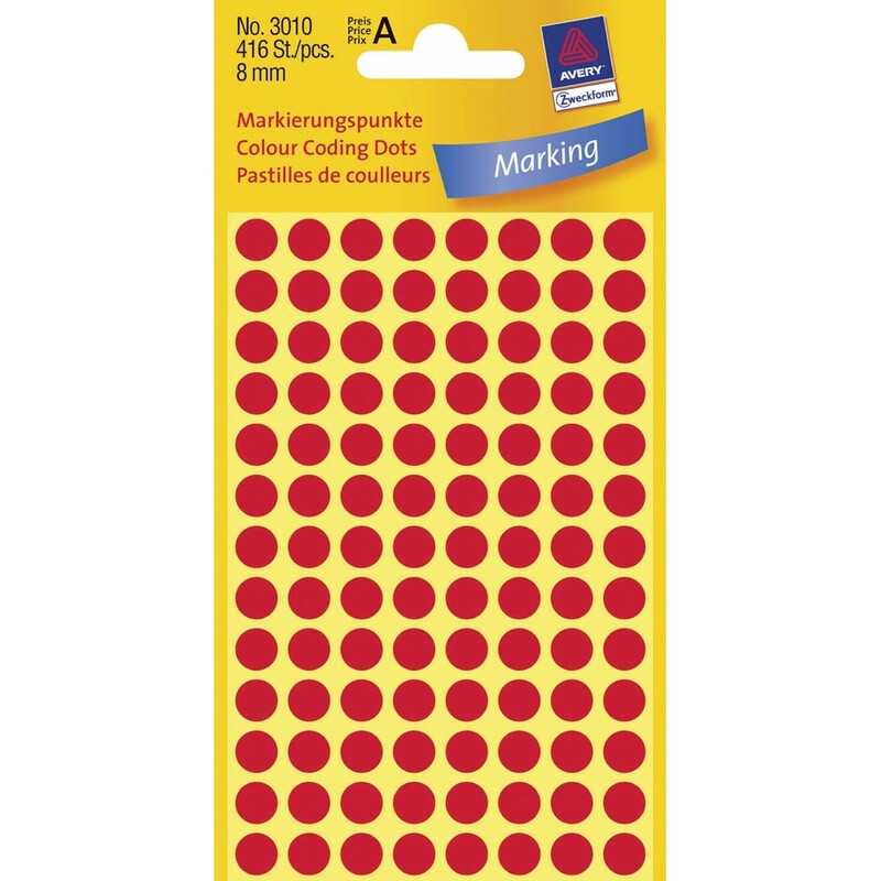 Etiket Avery rød farvekodningsdots Ø8 mm. pakke/416 stk. 3010
