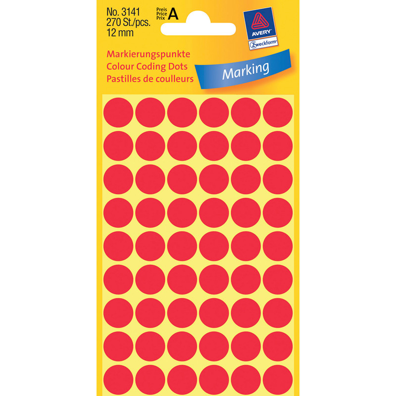Etiketter Avery 3141 Ø12 mm. 270 stk. Rød