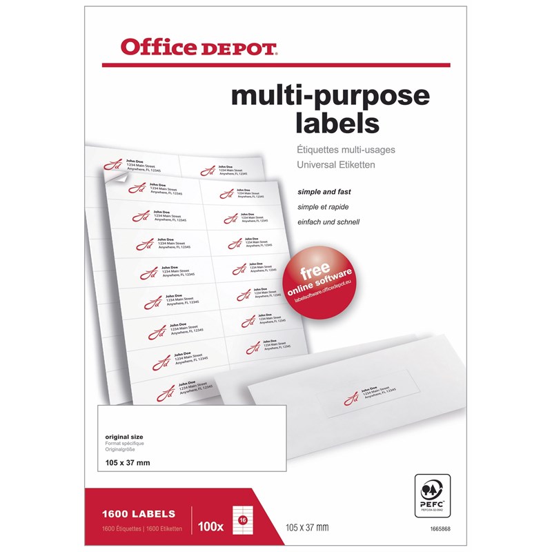 16 stk. pr. ark. Multifunktionsetiketter, som er nemme at aftage etiketarket for lettere og hurtigere påsætning. Gratis online etiketsoftware på: http://labelsoftware.officedepot.eu