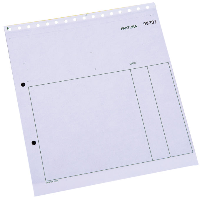 Fakturasæt i kasse med 100 stk á 3 blade (original + 2 kopier)