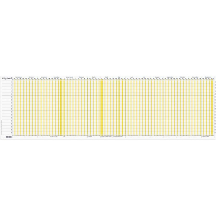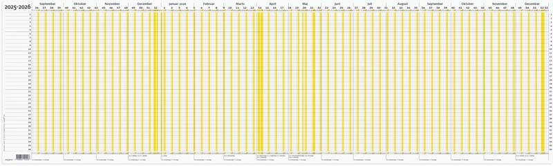 Ferieplanner 2025-2026 100×29,7 cm. Gul