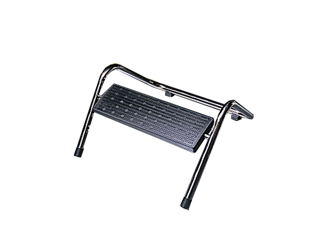 Den velkendte fodstøtte med forkromede rør og sort hvileplade. Sikrer en god ergonomisk arbejdsstilling, kan indstilles i 4 forskellige positioner.