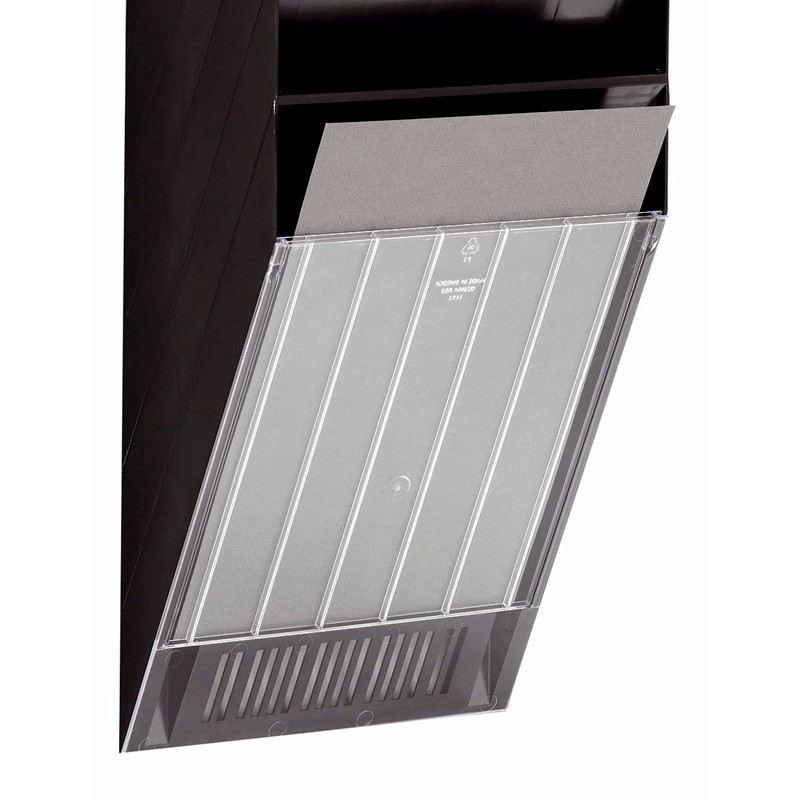 Frontplade til montering på nederste fag i flexifag brochureholdere, passer til stående modeller. Mål: 240 x 300 x 7 mm. (B x H x D)