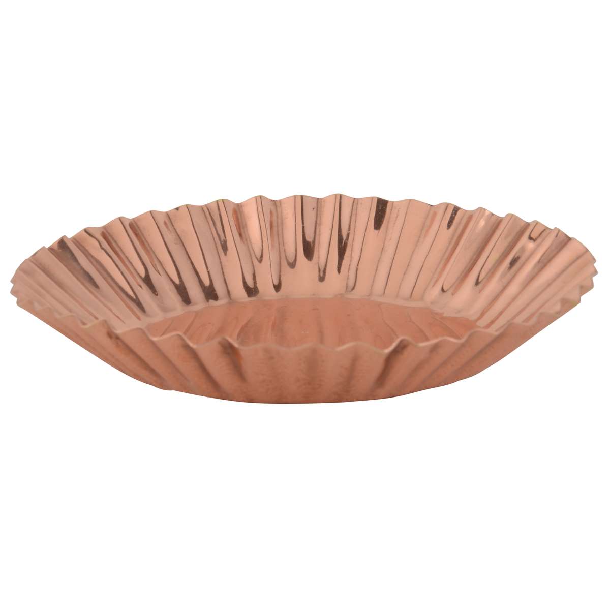 Metal fyrfadsstage med kobberlook med smalle riller. Mål: Ø10 cm. Højde: 2 cm.