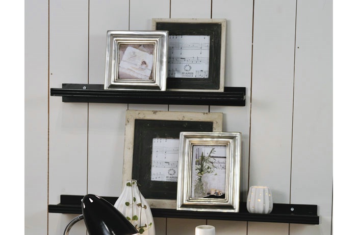 Gallerihylde i enkelt og rustikt design med forkant. Farve: Sort