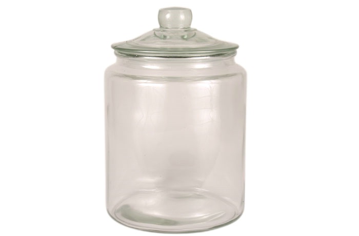 Stor glaskrukke med glaslåg som har gummikant, så den lukker helt tæt. Godkendt til fødevare.