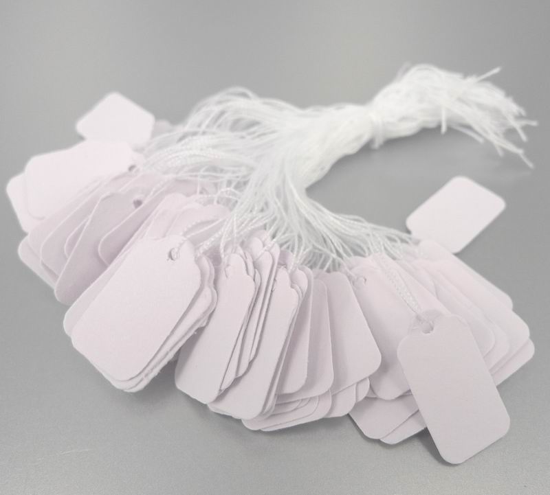 Hænge etiket med hvid snor, leveres i kasse med 1000 stk.