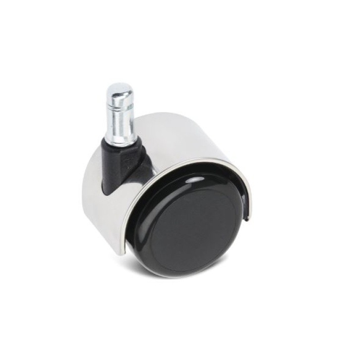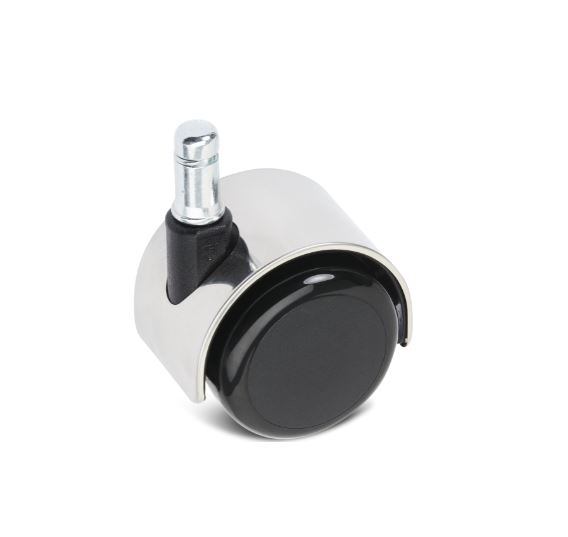 Hjul til kontorstol Ø50, passer til Prestige stolen. Bemærk 1 stk. Bemærk: 3 uger leveringstid. Type: Letrullende hjul Materiale/hus: Aluminium Maks. belastning (kg): 75 Dia. Bane: 50 Dia. Tårn (mm): 16 Skærm: Ja Banetype: Blød – sort Mængde: 1 stk.