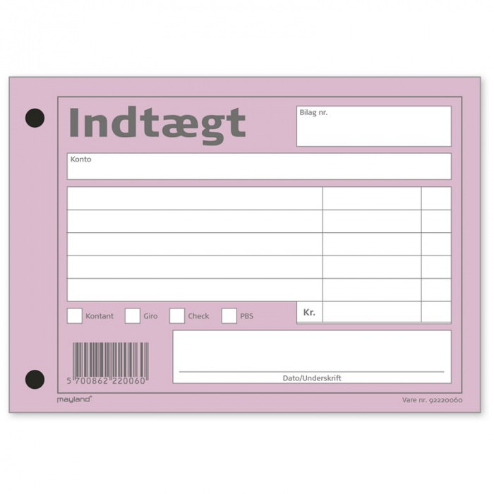 Indtægtbilag, rosa 100×148 mm. 100 bl. 92220060
