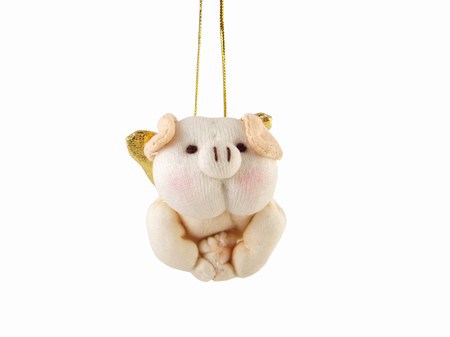 Lille sjov gris med guldvinger til ophæng på træ osv. Grisen kan foldes ud ved at trække i benene.