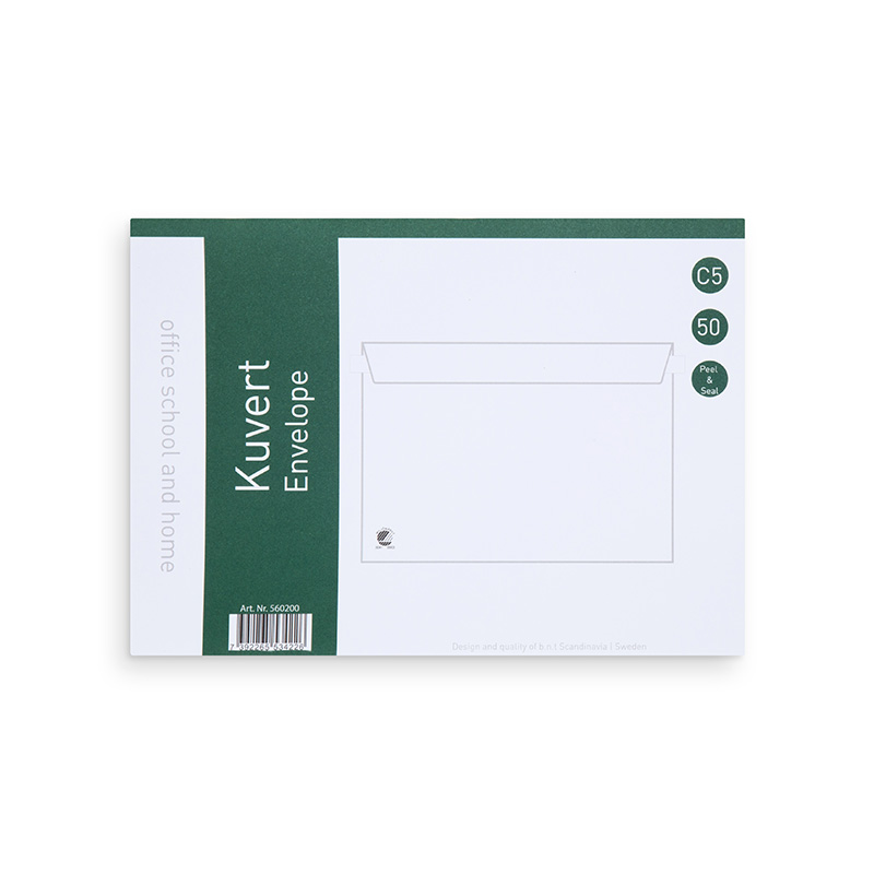 Miljøvenlig kuvert uden rude til A5 format, lukkes ved at fugte limstrimlen