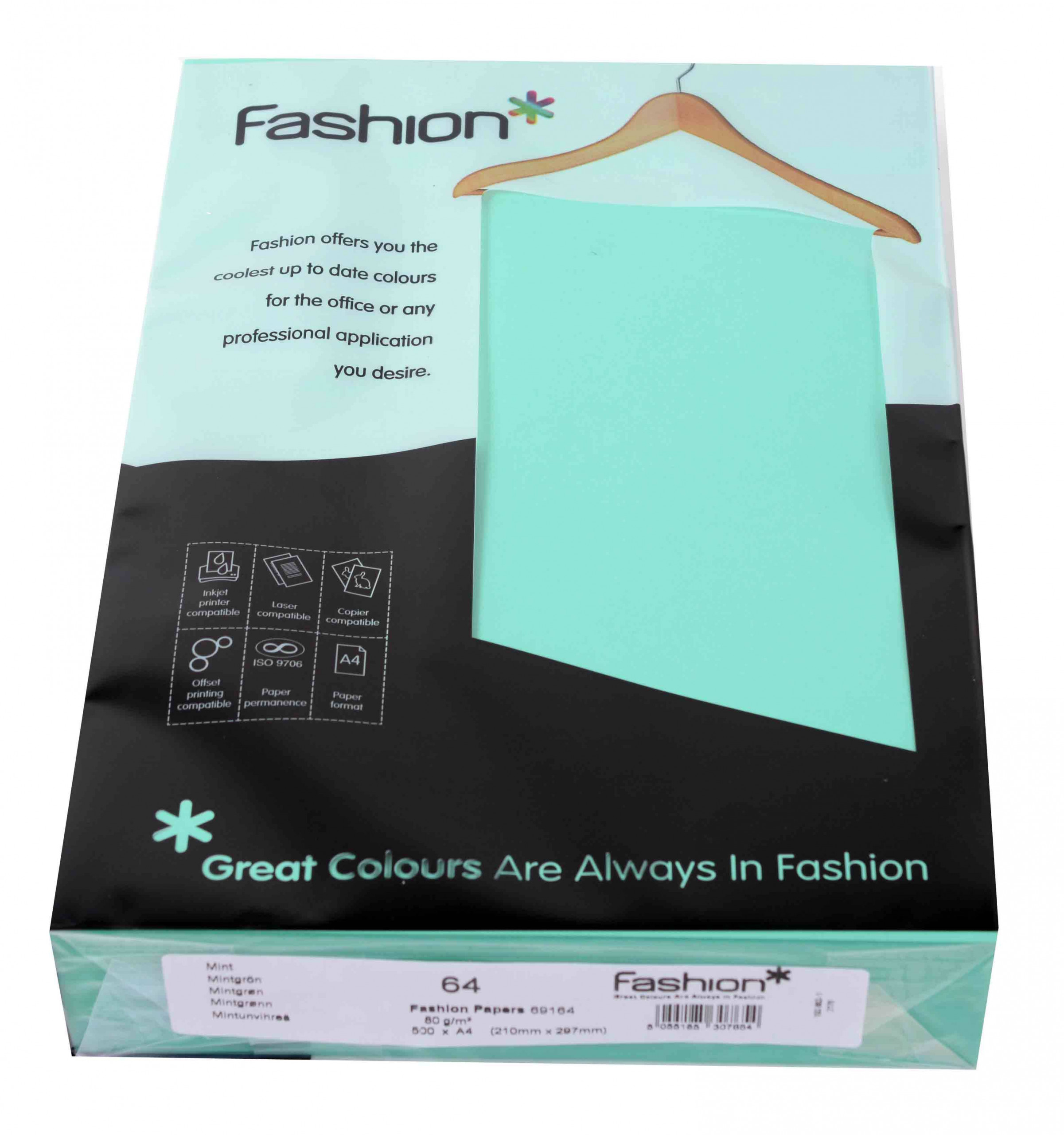 Fashion kopipapir er kulørt ubestrøget papir med en jævn overflade. Fashion er den farvestærke budbringer som hæver sig over det traditionelle hvide papir. og giver med 42 farver uendelige muligheder for kreativitet. Papiret kan bruges til laser og inkjet. Hver pakke indeholder 500 ark.