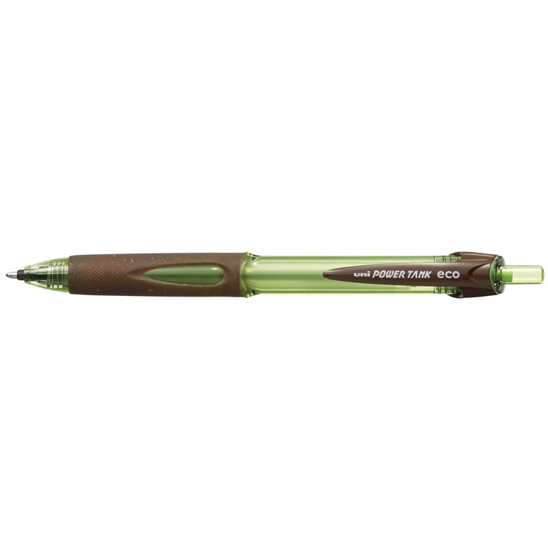 Mitsubishi har siden 1992 produceret produkter, hvor der er anvendt genbrugsmaterialer. Denne viden er brugt i den nye Power Tank ECO kuglepen. Pennekroppen er produceret af genbrugsplast og fingergrebet af rester fra træblyantsproduktion plus bindemidlet resin. Power Tank har fortsat 3 unikke egenskaber: Kan skrive på vådt papir, kan skrive opad og kan skrive ved helt ned til minus 20 grader.