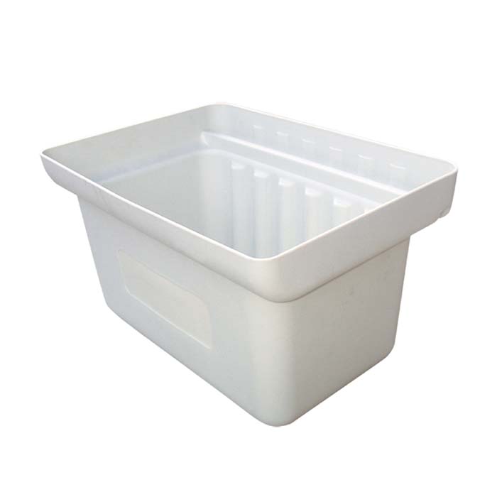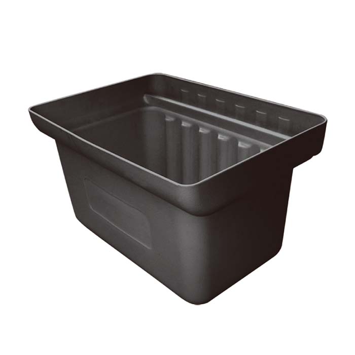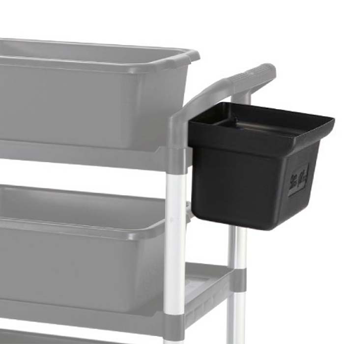 Lille spand til rullebord, sort. Passer til plastrullebord. Egnet til f.eks. bestik, affald, kontorartikler mv. Hægtes på rullebordets kant. Mål: 24x35x20h cm Til f.eks. bestik, affald, kontorartikler mv. Kan nemt rengøres Hægtes nemt på bordkant