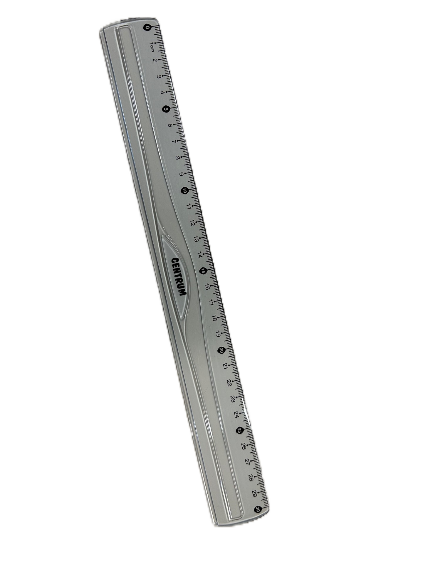 Standard plast lineal i klar hård plast. Længde: 30 cm. Linealen har bløde afrundede hjørner.