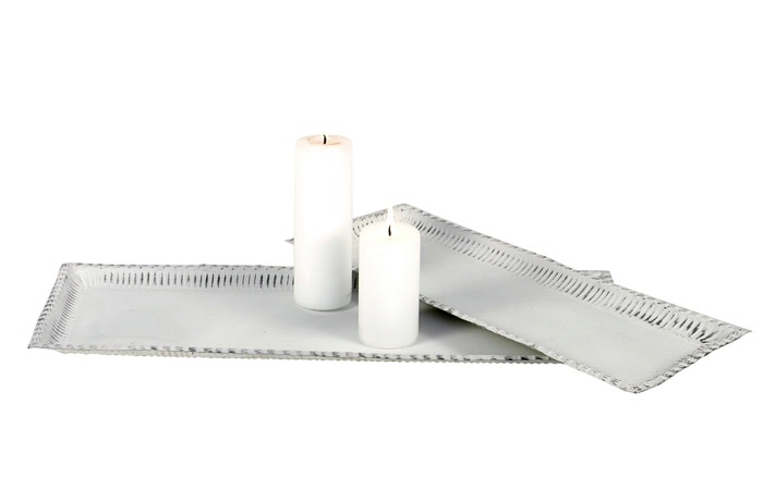 Flot hvid metal lysbakke med mønstret kant. Mål: Læmgde: 50 cm. Bredde: 18 cm.