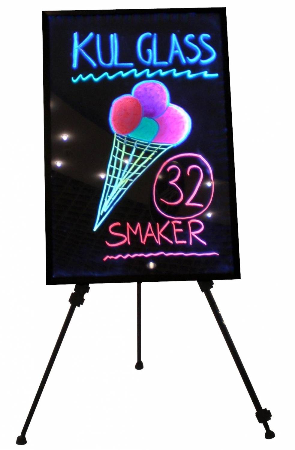 Lightsign skiltene kan tændes i flere farver, blinke eller “fade”(grøn, rød, blå, gul, lilla, lys blå) Skriv på tavlen et utal af gange og visk ud og start forfra, ligesom på en whiteboardtavle.