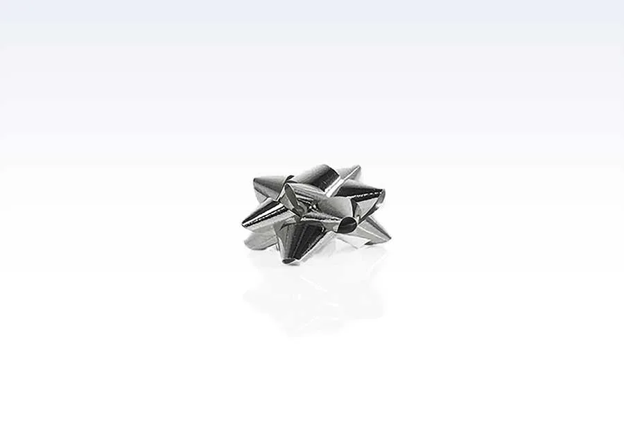 Metallic sløjfer 40×40 mm. med tape så det let og effektivt kan påsættes gaveindpakning og lign.