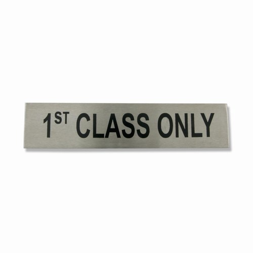 Metalskilt “1st CLASS ONLY” Børstet stål