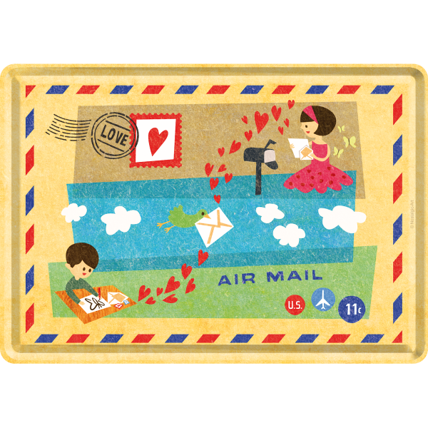 Metalskilt/Postkort “Air Mail” Mål: 10×14 cm. Incl. hvid kuvert.