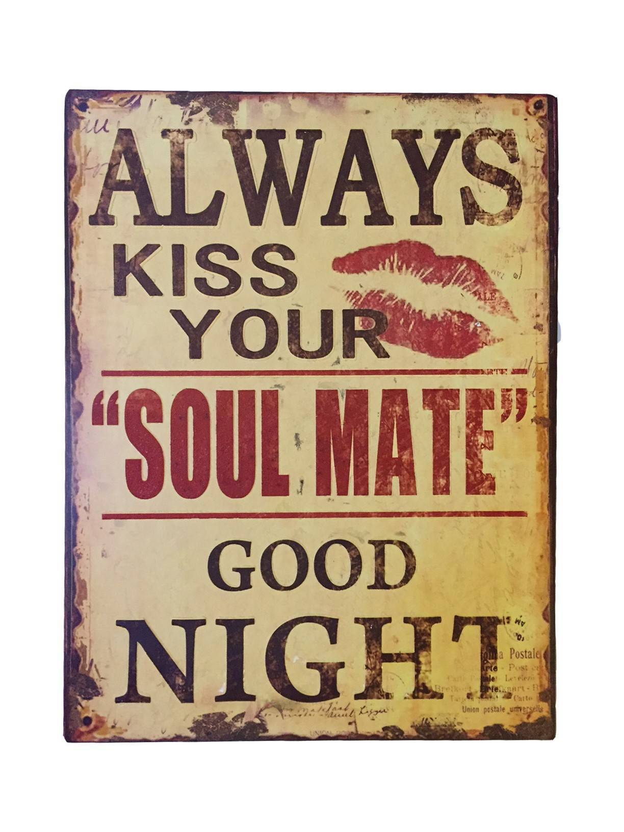 Metalskilt Always kiss your Soul Mate 25×32 cm.
