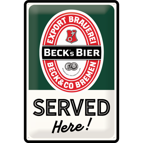 Metalskilt “Beck´s Bier served here!” 20×30 cm.