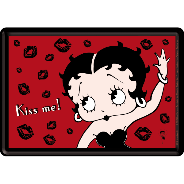 Metalskilt/Postkort “Betty Boops – Kiss Me” Mål: 10×14 cm. Incl. hvid kuvert.