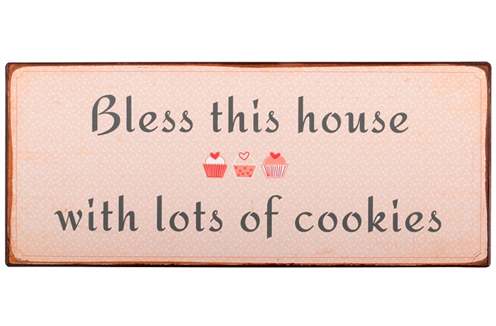Metalskilt “Bless this house with lots of cookies” Mål: Længde: 30,5 cm. Højde. 13 cm.