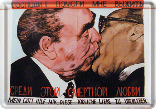 Metalskilt/Postkort “Bruderkuss” Mål: 10×14 cm. Incl. hvid kuvert.