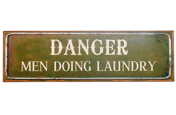 Metalskilt “DANGER Men doing laundry” Mål: Længde: 51 cm. Højde: 15,3 cm.