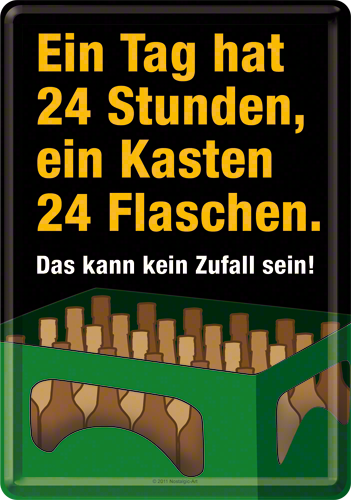 Metalskilt/Postkort “Ein Tag hat 24 Stunden…” Mål: 10×14 cm. Incl. hvid kuvert.
