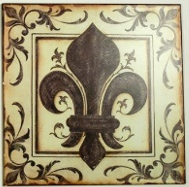 Stort Metalskilt fra Ib Laursen med motiv af fransk lilje (model B). Mål: 30,5 x 30,5 cm.