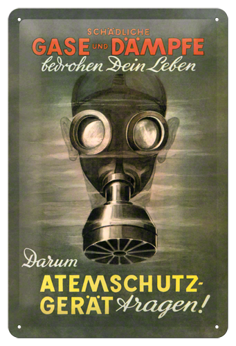Metalskilt “Giftige Gase” med huller til vægophæng i A4-format. Mål: 20×30 cm.