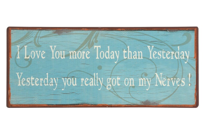 Metalskilt “I love you more today than yesterday – yesterday you really got on my nerves”
