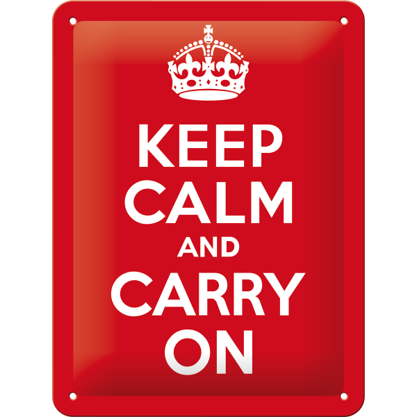 Metalskilt “Keep Calm And Carry On” 30×40 cm.